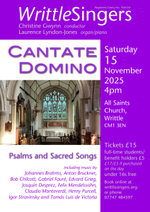 Writtle Singers is an imaginative and friendly chamber choir based in the village of Writtle, near Chelmsford, in Essex. We aim to give high quality concerts across a wide repertoire from renaissance to contemporary. Enquiries from suitably experienced singers are always welcome. Do have a look through this website, including the About Us page and Join Us page, and if you are interested just get in touch via our Contact Us page.